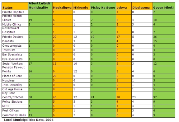 In addition to these facilities, District also adopted the concept of a Thusong Services Centre, formerly Multi Purpose Community Centre, to provide a comprehensive range of services under one roof in an effort to provide all residents in the GSDM area one-stop access to services within their proximity (10 KM).