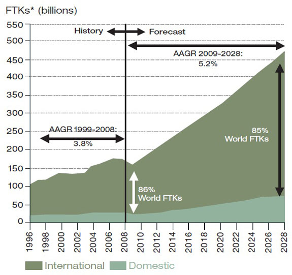 After years of steady growth from 2003, air cargo traffic has faced a severe downturn, linked to the global economic conditions and a slump in consumer and therefore manufacturing demand. However, most in the forecasting community remain convinced that the market will recover, as economic fundamentals are expected to once again create a real demand for the transportation of goods, particularly by air.