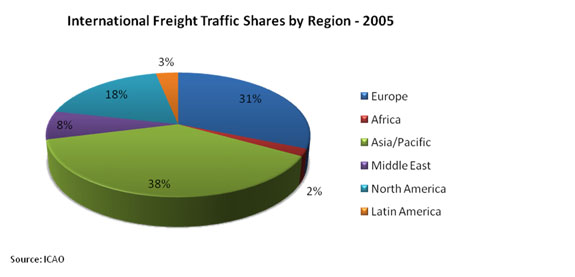 Airlines of the Asia/Pacific regions achieved the highest share of air traffic of about 38% while the European and North American airlines saw their shares decline to 31.2% and 18.3% respectively, in 2005.