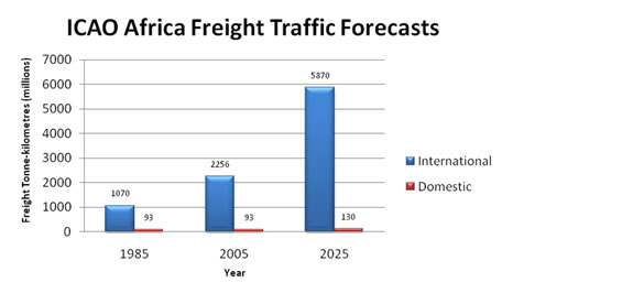International freight traffic in Africa has tended to grow rapidly than domestic traffic, and in the 20 year period between 1985-2005 freight traffic has more than doubled while domestic freight traffic stayed almost unchanged as shown in Figure 29.