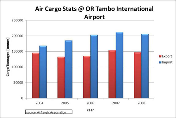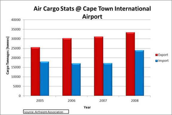 Air freight information at Cape Town, OR Tambo, Kruger Mpumalanga International airports has been acquired and is presented below. Air freight records for Mala Mala airfield are not available and will not be presented here.