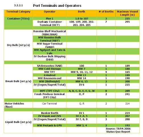 The status of the Port of Durban is as a core container port and secondly its position within the general bulk cargo - export flow corridor between Gauteng and Durban. This ensures its priority status in terms of the Moving South Africa strategic action plan and a major port for container and auto handling.