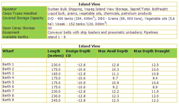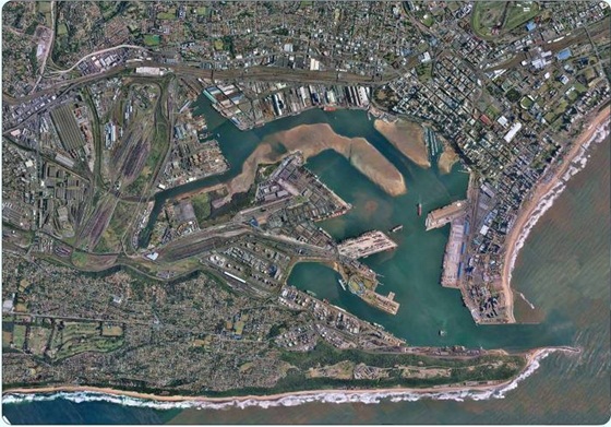 Located in KwaZulu Natal Province (KZN) on the eastern coast at Lat:29 52S Long:3102E, the port is South Africa's premier port in container and general cargo handling with 57 berths, 6 repair berths and 302 km of rail track. The port handles a wide variety of commodities with the highest number of containers in sub-Saharan Africa. A broad range of shipping and maritime industry services and facilities are found within the ports boundaries which encompass a land mass of 1,854 hectares, water surface area of 892 hectares at high tide and 679 hectares at low tide.
