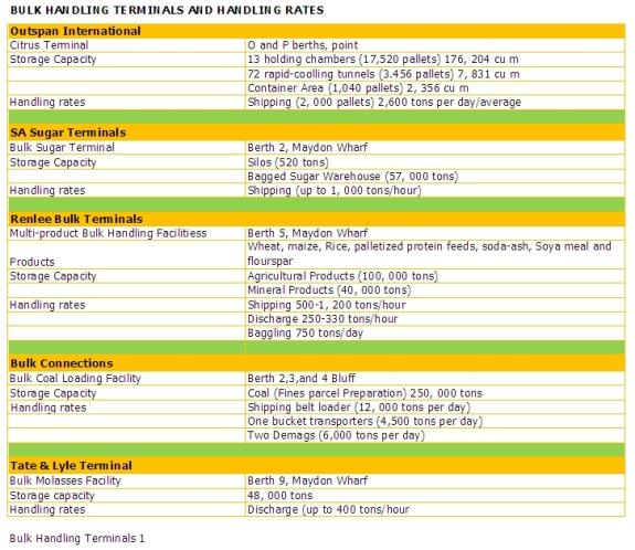 BULK HANDLING TERMINALS AND HANDLING RATES