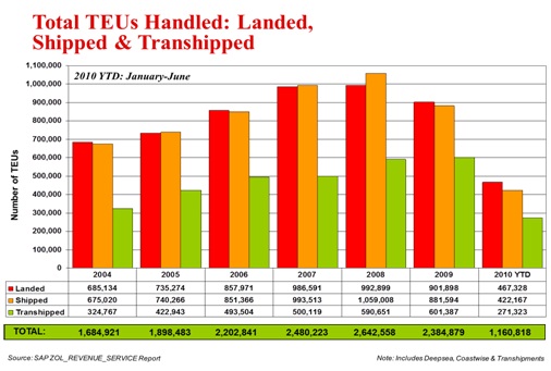 What can be observed at the port is that operational challenges and market forces play a determinant factor to the ports ability to meet targets set by either the broader Transnet machinery and/or stakeholders such as cargo owners, the city and the State. The balancing act required to meet some of these expectations can produce frustrations from all quarters, but what is of importance is to embrace the unique stature the port has in the region and in Africa as a whole. Secondly, international markets due dictate supply and demand of some key goods moving through the port; i.e. the global troubles of the auto industry have resulted in a decline of 24% of auto units overall in 2009/2010 in the port; container volumes have dropped by 4.5% during the same period, despite the spikes observed due to the FIFA World Cup. Mostly felt at the port was the strike that derailed some business in the area, as far as Gauteng Province. This is a testament of the commercial role the port has nationally and regionally.