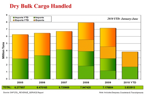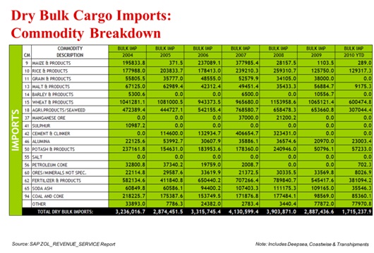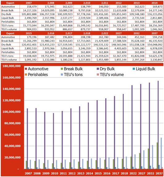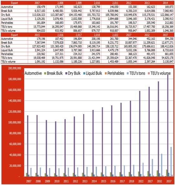 OBSERVATIONS: Dry bulk cargoes projected growth and movement is dependent on Transnet Freight rail expansion program, i.e. coal and iron ore, etc. will be capped at tons that can met by TFR. It"s important to note that these volumes are dependent on international markets and price.