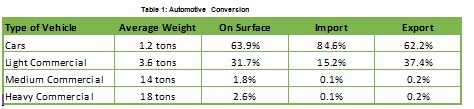 - Capacity Calculation = port transhipment + import + export + emptiesTable 1: Automotive Conversion