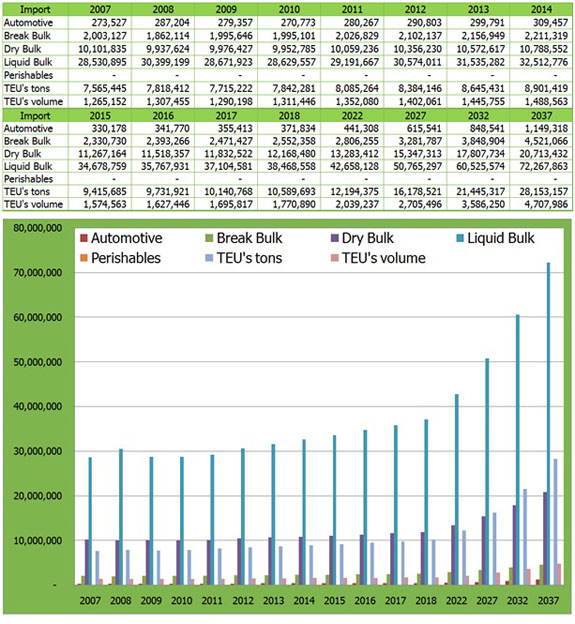 Table 3: Import for all SA Ports 2007-2037 (adjusted to NPA type split)