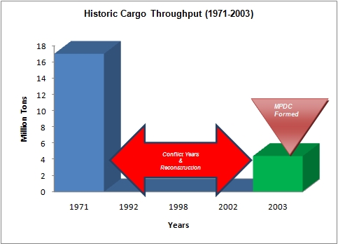 The port and the Maputo corridor are discussed as a singular system since the success of one reflects on the other. This logistics freight highway (provincial M4 and national - N4); rail network; and better designed and operational cross-border has facilitated the port’s redevelopment and better performance than originally envisaged at the beginning of the concessioning process in 2003. As of 2006 the port under the management and operations of MPDC, handled over 6.5 million tons of cargo and had 690 vessel arrivals, out-performing comparable ports of PE, Cape Town and East London during the same period.
