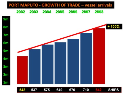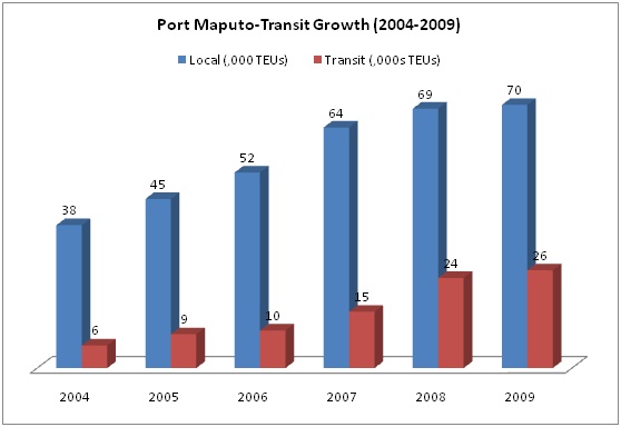 Port Maputo before 1975 handled over 17 million tons of cargo; and today it is climbing the steep hill to regain its strategic role as a transit-cargo port of countries such as Swaziland, South Africa, Zimbabwe and Botswana. With the Maputo Development Corridor and the continued improvements on the rail and road side, confidence in the port is demonstrated by the increased clientele between 2007 and 2009 which went from 5 to 11 main transit operators.
