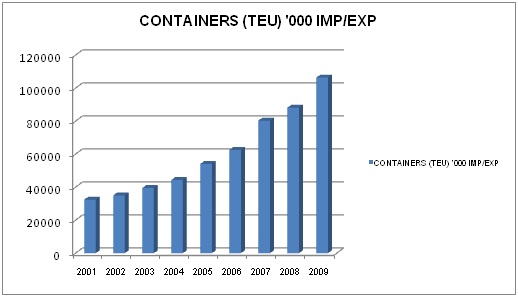 Figure 4: Port Growth: Cargo volumes and Vessel Arrivals (2002-2009)