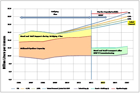 In response to numerous operational challenges due to lack of demand capacity, the Bridging Plan first developed in 2007 is presented below as contained in the Transnet National Infrastructure Plan - 2008.