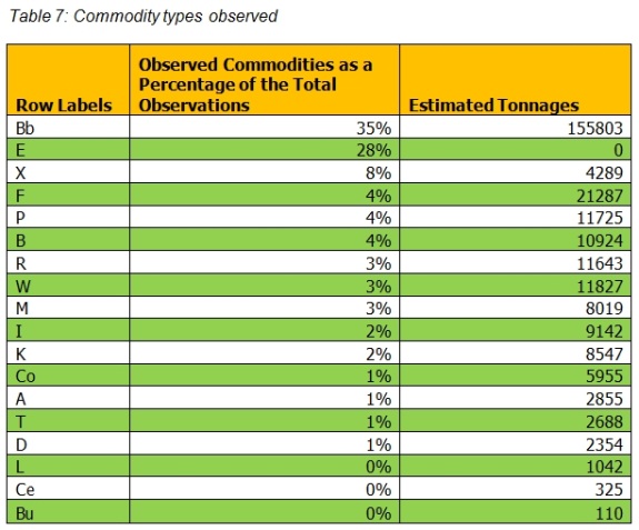 Commodities are classified and named as shown in Table 3. The commodities were physically identified as the cargo moved through the survey point.