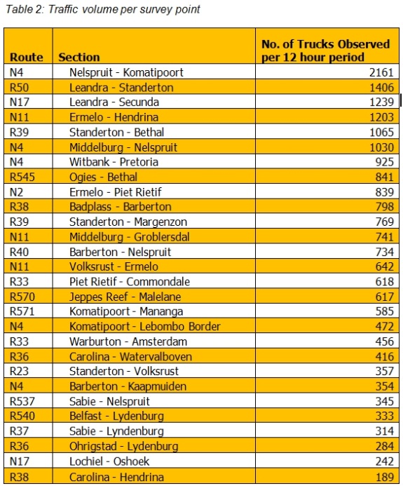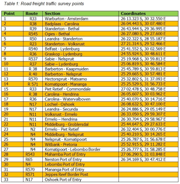 It is important to understand what drives freight movement. For every freight movement, there is an origin and a destination, and it is this information that helps us understand the freight behaviour environment. In Mpumalanga, three routes were identified for the Origin and Destination (O&D) survey. These routes are; the N4, N11, and N17. On the N4 route, the Middleburg weighbridges were used to conduct O&D surveys. The N11 and the N17 were both conducted on the Ermelo Traffic Control Centre, as freight moving on these routes is directed to the same centre.