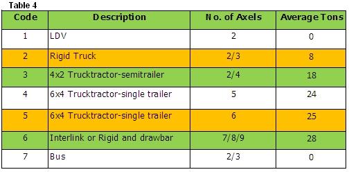 Vehicle types are classified and named as shown in Table 4. The vehicle types were physically identified as the cargo moved through the survey point.