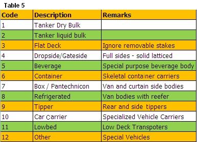 In the software used to analyse the data each of the vehicle Groups is assigned a specified "average" payload. The assigned payload per Group has been calculated to take into account factors such as;