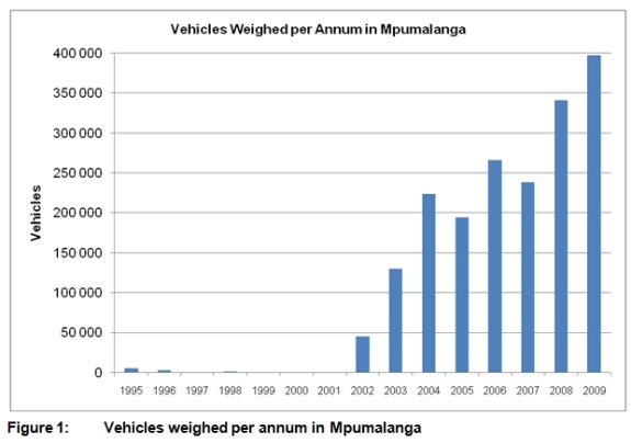 Figure 1 shows the number of vehicles that have been weighed annually in Mpumalanga.