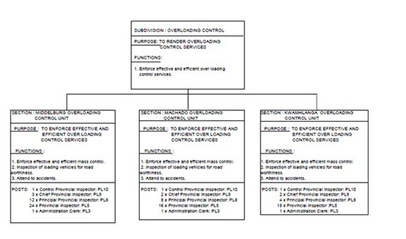The control of overloading by the provincial authorities uses the various weighbridges located on the provincial and some municipal roads, while the control of overloading on the N4 toll road is handled by the toll concessionaire TRAC.