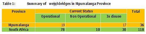 There are 16 weighbridges in Mpumalanga, six of them are located in Nkangala District Municipality (MDORT, 2006a):