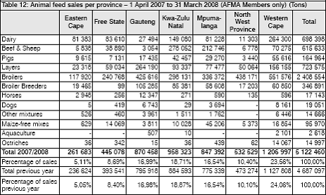 Table 12: Animal Feed Sales Per Province - 1 April 2007